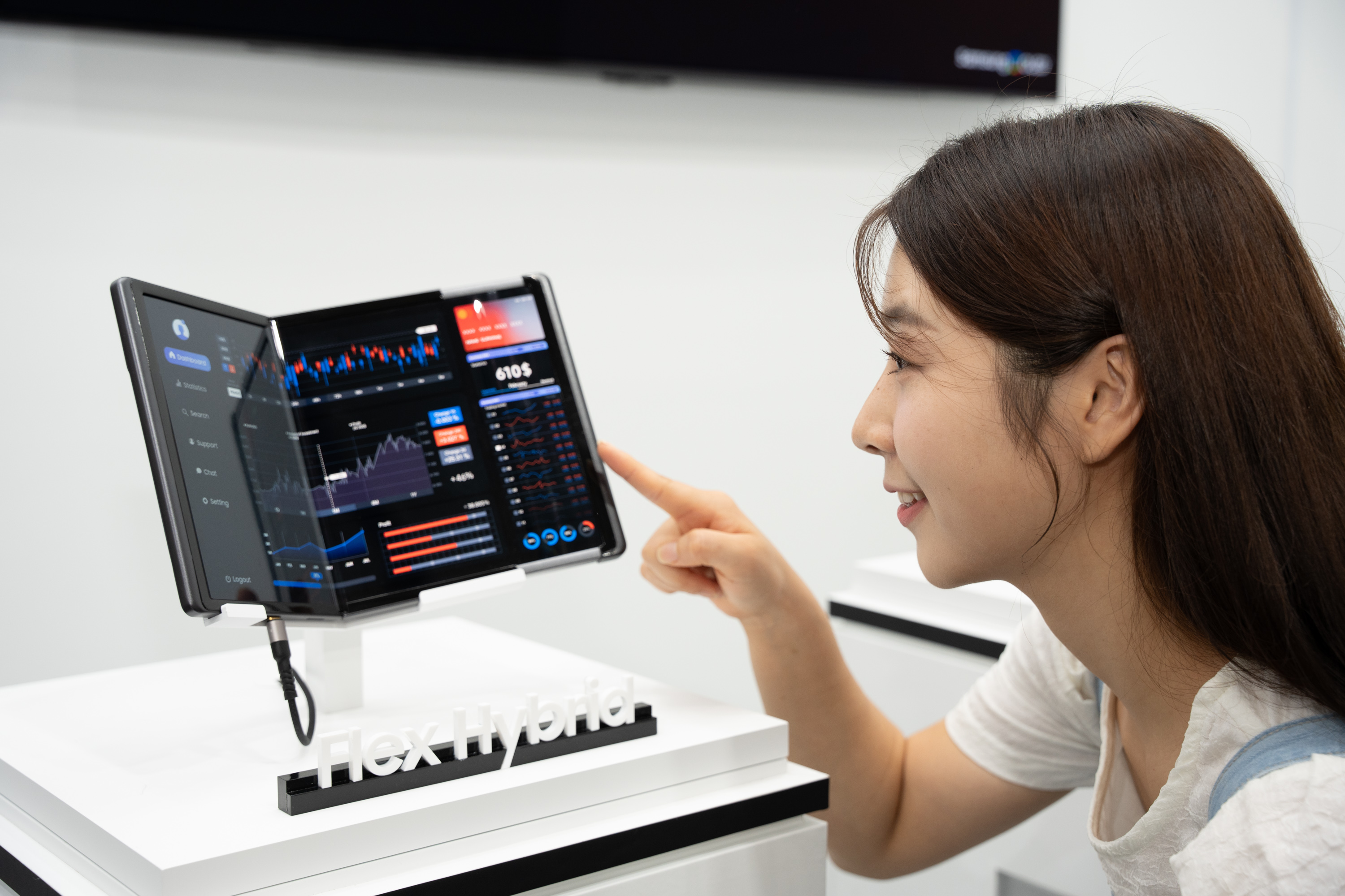 삼성디스플레이는 ▲360도로 접을 수 있는 플립형 폴더블 플렉스 인앤아웃을 비롯해 ▲안팎으로 두 번 접히는 플렉스S ▲폴더블과 슬 라이더블 두 가지 기술을 결합한 플렉스 하이브리드 등 다양한 멀티 폴더블 OLED에서 폴더블 고유의 확장성과 가변성을 활용한 AI 인터페이스를 시연한다.