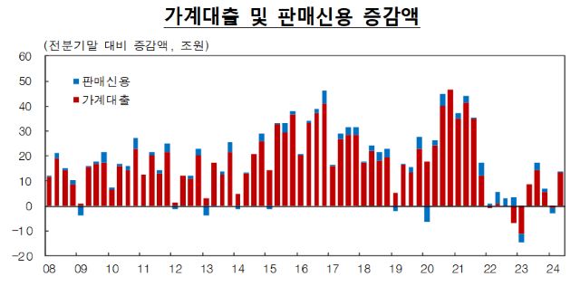 한은이 20일 발표한 ‘2024년 2분기 가계신용’에 따르면 올 2분기말 가계신용 잔액은 1896조 2000억원으로 전분기말 대비 13조 8000억원 증가했다. 가계대출은 1780조원, 판매신용은 116조 2000억원이다.