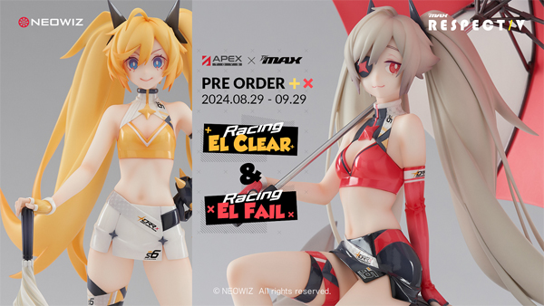 이번 콜라보 피규어는 디제이맥스의 인기 캐릭터 ▲엘 클리어와 ▲엘 페일 2종으로 구성됐다. 모두 1/7 스케일(높이 약 24cm)로 제작됐으며 디제이맥스 리스펙트 V 클리어 패스 시즌6의 레이싱 테마를 적용했다. 엘 클리어와 엘 페일 피규어의 가격은 각각 17만5000원, 18만5000원이다.