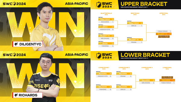 전날 첫 경기에서 YODAYOOUO에게 아쉽게 패했던 RICHARDS는 심기일전한 기세로 승리 행진을 이어갔으며, 마지막 라운드에서 YODAYOOUO를 다시 만나 3:1로 설욕하고 지난 2022년에 이어 두 번째로 지역컵 진출 기회를 얻었다.