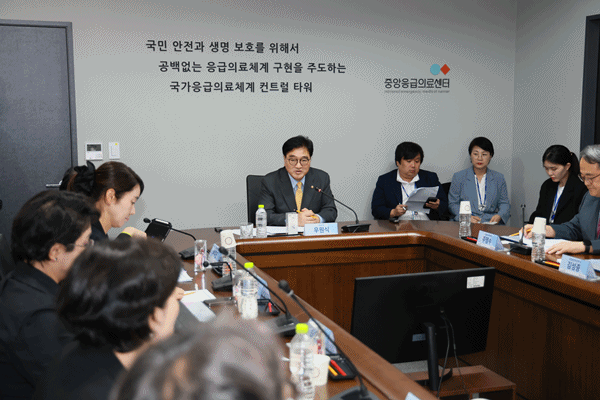 우 의장은 “중앙응급의료센터는 국가 재난과 응급의료의 컨트롤 타워다”며 “어려운 상황에서도 대한민국 응급의료체계를 굳건히 지켜주고 계시는 임직원분들께 감사드린다”고 말했다.