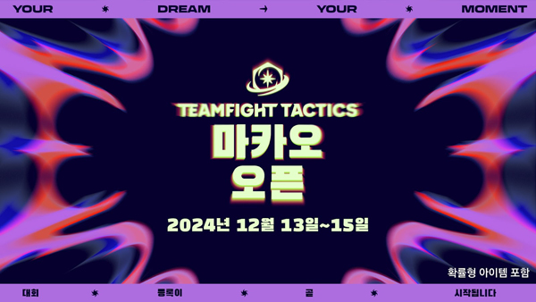(서울=NSP통신) 이복현 기자 = 라이엇게임즈(한국 대표 조혁진)가 오는 12월 13일부터 15일까지 사흘 동안 전략적 팀 전투(Team Fight Tactics; TFT)의 두 번째 글로벌 오픈 브래킷 오프라인 대회를 마카오에서 개최한다.