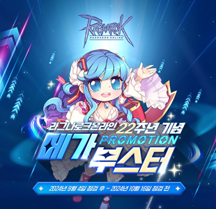 라그나로크 온라인은 2002년 국내 상용화 이후 올해 22주년을 맞았다. 이에 유저들에게 보답하기 위한 IP 콜라보레이션, 22주년 프로모션 등을 선보인데 이어 메가 부스터 프로모션도 준비했다.