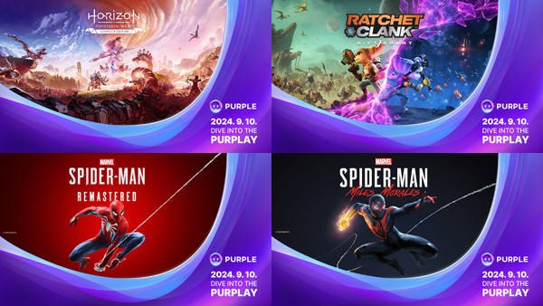 퍼플의 첫 PC 게임 배급 파트너는 소니 인터랙티브 엔터테인먼트(이하 SIE)다. 국내 이용자들은 ▲호라이즌 포비든 웨스트(Horizon Forbidden West)를 비롯해 ▲마블스 스파이더맨 리마스터(Marvel’s Spider-Man Remastered) ▲마블스 스파이더맨 마일즈 모랄레스(Marvel’s Spider-Man: Miles Morales) ▲라쳇 앤 클랭크: 리프트 어파트(Ratchet & Clank: Rift Apart) 등 SIE의 대표작 PC 버전을 퍼플에서 즐길 수 있다.