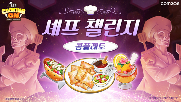 (서울=NSP통신) 이복현 기자 = 컴투스(대표 남재관)가 신작 요리 시뮬레이션 게임 BTS 쿠킹온: 타이니탄 레스토랑(이하 BTS 쿠킹온)에 셰프 챌린지 콘텐츠 신규 테마 ‘콤플레토’를 추가했다.