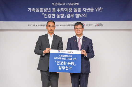 이기일 1차관은 “남양유업과 협업을 통해 가족돌봄청년 등 돌봄 서비스 이용을 활성화하고 지원을 강화하는데 기여할 것으로 기대한다“며 “앞으로 돌봄 취약계층에 대한 지원을 확대하기 위한 민∙관 협업을 강화해 나갈 것”이라고 말했다.