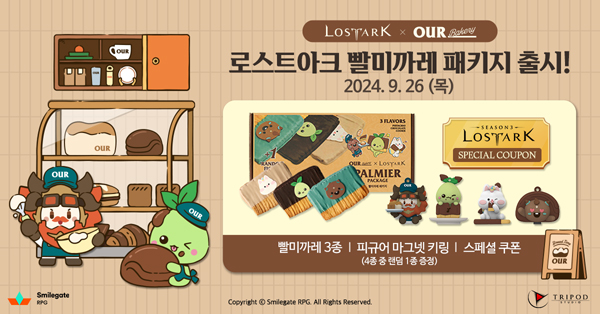9월 26일부터 진행되는 이번 컬래버레이션에서는 아우어베이커리에서 함께 빵을 만드는 로스트아크의 마스코트 모코코와 에스더 바훈투르를 테마로 특별한 패키지를 선보인다.