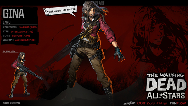 워킹데드: 올스타즈는 펀플로가 개발하고 컴투스홀딩스가 글로벌 서비스하는 수집형 RPG다. 좀비 신드롬을 일으킨 스카이바운드 엔터테인먼트의 워킹데드(The Walking Dead) IP를 활용해 포스트 아포칼립스 상황에서의 생존을 주제로 흥미진진한 스토리를 펼쳐가고 있다.