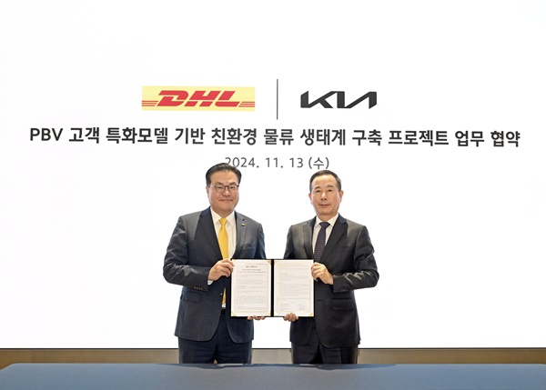 (서울=NSP통신) 강은태 기자 = 기아는 13일 브랜드 체험관인 Kia360에서 DHL 코리아와 친환경 물류 운송 혁신 프로젝트 추진을 위한 업무협약(MOU)을 체결했다.
