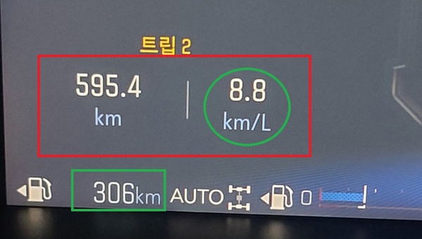 NSP통신-총 595.4km를 시승한 후 체크 한 쉐보레 올 뉴 콜로라도의 실제 주행 연비 8.8km/ℓ 기록 (사진 = NSP통신)