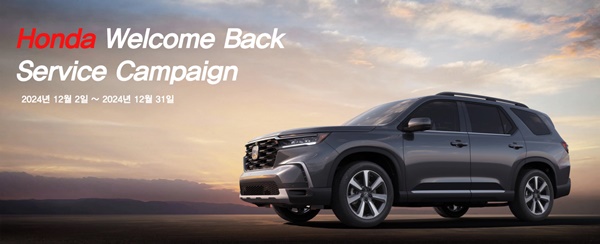 (서울=NSP통신) 강은태 기자 = 혼다코리아(대표 이지홍)가 12월 한 달간 혼다 자동차 고객을 대상으로 ‘혼다 웰컴 백 서비스 캠페인(Honda Welcome Back Service Campaign)’을 실시한다.