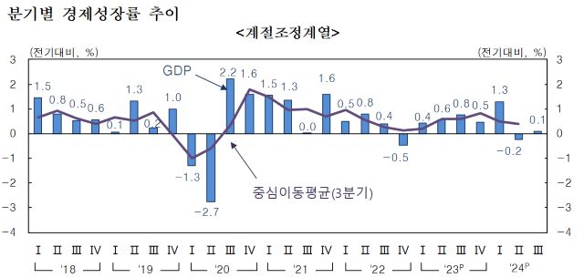 (서울=NSP통신) 강수인 기자 = 수출이 부진하고 건설투자가 식으며 올 3분기 국내총생산(GDP)은 전기 대비 0.1% 성장했다.