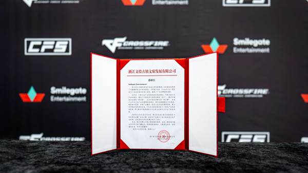 스마일게이트, 中 저장성 문화관광발전 유한공사로부터 감사장 수상