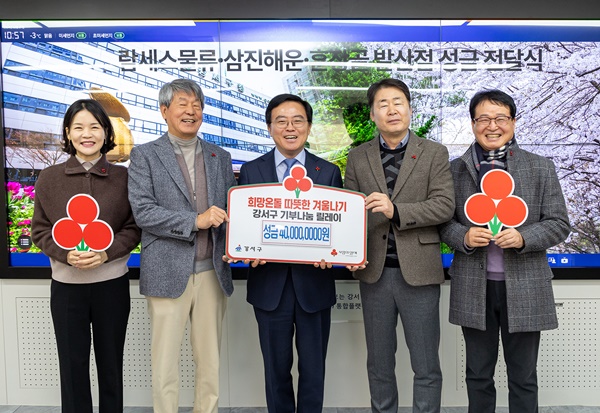 또 삼진 해운(대표 강정희)과 훈장골 발산점(대표 이규호)도 각각 1000만 씩을 구에 기탁하며 이웃돕기에 힘을 보탰다.