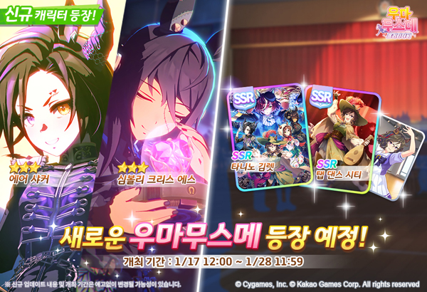 이번 업데이트에서는 서포트 카드 2종 ▲SSR 포르투나의 갈채 타니노 김렛과 ▲SSR 드높이 YO-HO! 탭 댄스 시티도 추가해 육성의 재미를 더했다.