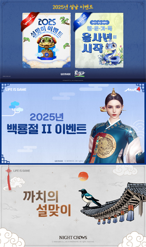 (서울=NSP통신) 이복현 기자 = 위메이드(대표 박관호)가 ▲미르의 전설2 ▲미르의 전설3 ▲미르4 ▲나이트 크로우 MMORPG 4종이 설날을 맞아 특별 이벤트를 실시한다.