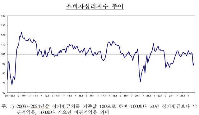 한은은 “정치 불확실성 해소 기대감, 미국 신정부의 관세정책 완화 기대 등으로 소비자심리지수가 상승했다”고 설명했다.