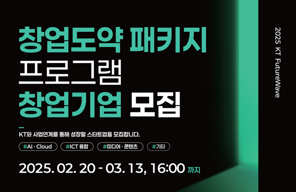 (서울=NSP통신) 이복현 기자 = KT(030200)가 ‘KT 퓨처웨이브(FutureWave) 창업도약패키지’ 모집을 2월 20일부터 3월 13일까지 진행한다.