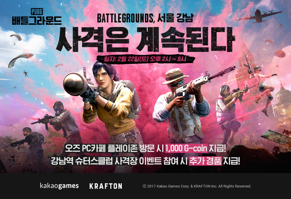 카카오게임즈, 배틀그라운드 오프라인 PC방 플레이존 이벤트 개최