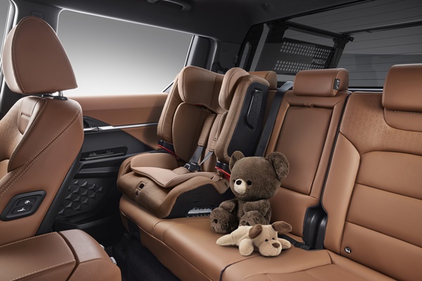 실내는 각종 레저 활동에 필요한 장비들을 여유롭게 실을 수 있는 최대 500kg의 적재 중량을 제공하면서도 중형 SUV 수준의 넓은 실내 공간을 갖췄다. ▲국내 SUV 모델 동등 수준의 커플디스턴스(850mm) ▲2열 슬라이딩 ▲32도 리클라이닝 시트 ▲2열 헤드룸(1002mm) 등 넉넉한 2열 공간을 확보해 승객 편의성을 극대화했다.