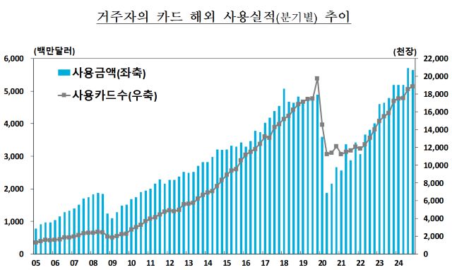 (서울=NSP통신) 강수인 기자 = 지난해 카드 해외사용금액이 200억달러를 돌파했다. 내수 침체에도 해외여행객 증가, 알리 익스프레스·테무 등 해외 직접 구매 수요 급등세에 사상 최대 수준을 기록했다.