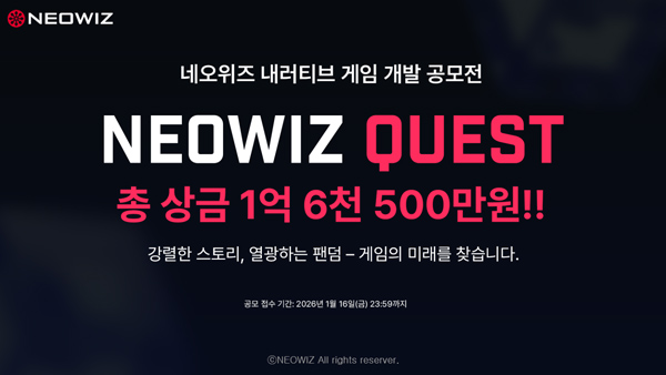 (서울=NSP통신) 이복현 기자 = 네오위즈(095660)가 내러티브 인디게임 개발 공모전 ‘네오위즈 퀘스트(NEOWIZ Quest)’를 개최한다.