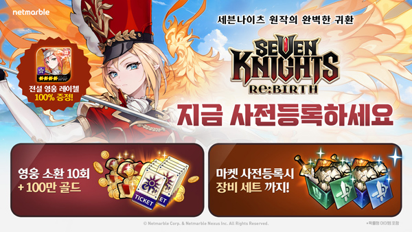 이용자들은 세븐나이츠 리버스 공식 브랜드사이트, 앱마켓(AOS, iOS), 네이버 라운지, 넷마블 런처를 통해 사전등록을 진행할 수 있다.