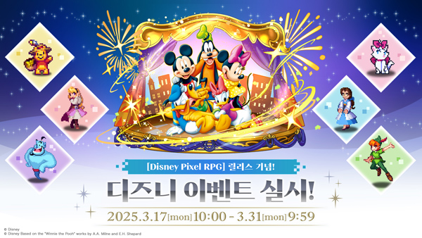디즈니 픽셀 RPG 출시 기념 이벤트는 3월 17일 오전 10시부터 3월 31일 오전 9시 59분까지 진행된다.
