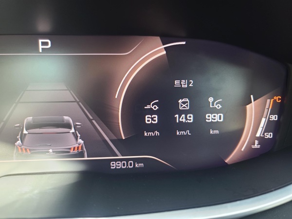 총 990km를 63km/ℓ의 평균속도로 약 12시간 정도 시승한 후 체크 한 푸조 5008 GT모델의 연비는 놀랍게도 14.9km/ℓ를 기록했다.