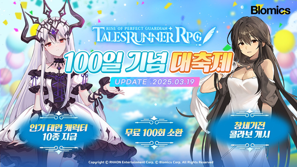 테일즈런너RPG 이상훈 PD는 “이번 업데이트와 이벤트는 100일간 함께 해준 이용자들과 잔치를 즐기는 마음으로 준비했다”며 “앞으로 업데이트는 물론 창세기전 콜라보와 같은 다채로운 콘텐츠로 게임의 매력을 넓혀 가겠다”라고 말했다.