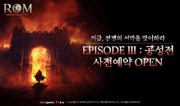 (서울=NSP통신) 이복현 기자 = 카카오게임즈(293490)와 레드랩게임즈(대표 신현근)가 글로벌 동시 서비스하는 하드코어 MMORPG 롬(ROM: Remember Of Majesty, 개발 레드랩게임즈)이 ‘에피소드Ⅲ : 공성전’ 사전예약을 시작했다.