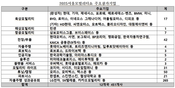 이번 전시는 12개국 451개사가 참가하며 참가기업 수 기준으로 역대 최대 규모로 주제는 ▲Mobility Everywhere(공간을 넘어)와 ▲Beyond Boundaries(기술을 넘어)다.