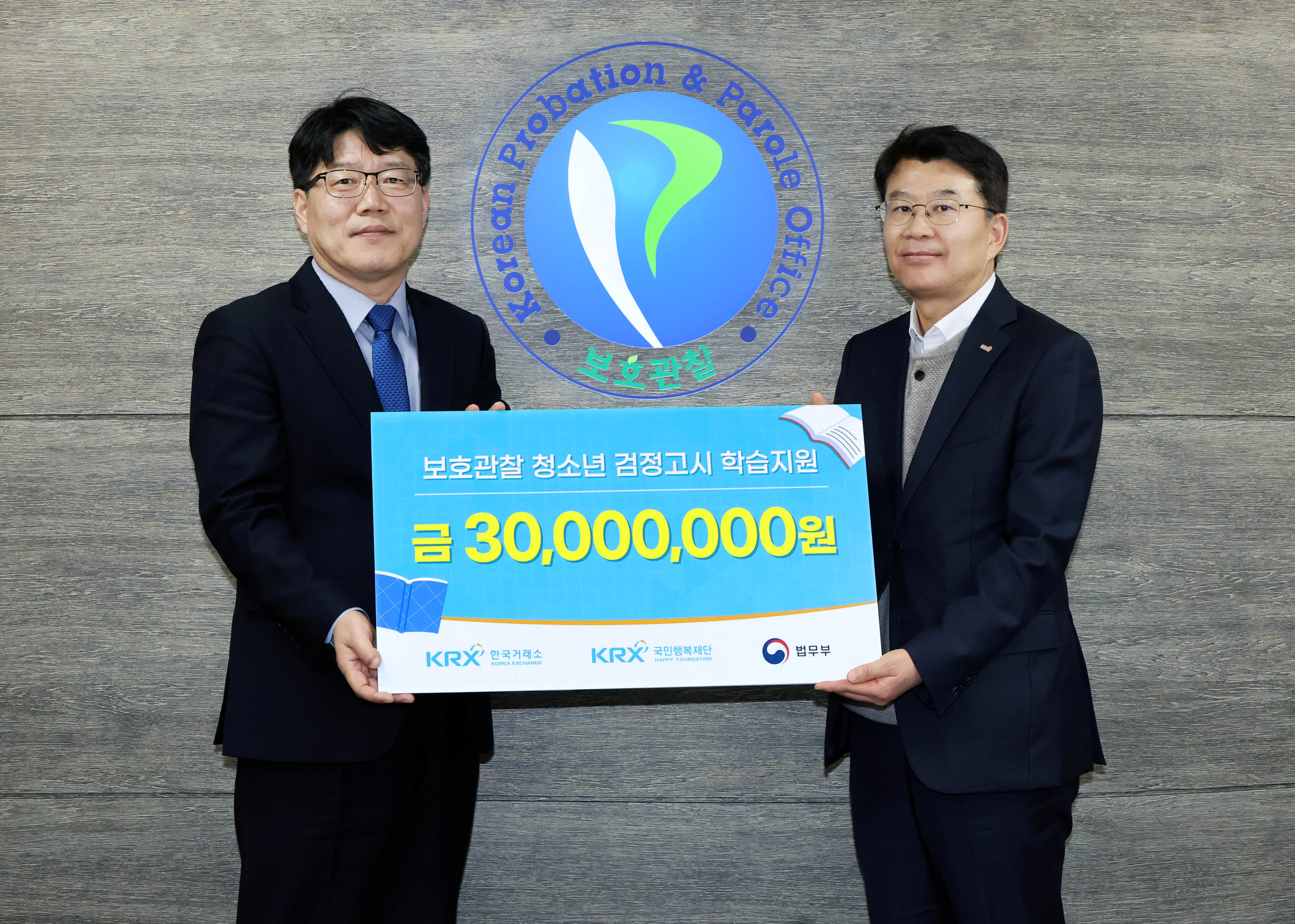 (서울=NSP통신) 설희 기자 = 한국거래소는 서울보호관찰소에서 ‘보호관찰 청소년 검정고시 학습지원’을 위한 후원금 3000만원을 법무부에 전달했다.