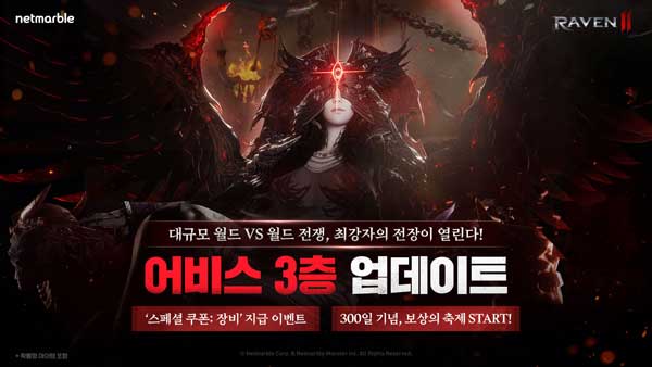 어비스는 레이븐2의 상위 경쟁 지역 콘텐츠로, 최상위 필드 보스가 등장하는 것이 특징이다. 이번에 선보이는 어비스 3층은 2개 월드가 매칭돼 6개 서버의 이용자가 함께 즐길 수 있는 대규모 월드 콘텐츠로 운영된다.