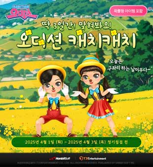 오디션은 4월1일부터 4월3일 정기점검 전까지 3일 간 홈페이지의 소통공간에서 오디션 캐치캐치를 진행한다.