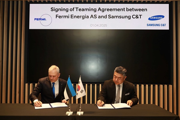 삼성물산 건설부문(이하 삼성물산)은 지난 1일 서울시 중구 서울스퀘어에 위치한 에스토니아 비즈니스 허브에서 열린 ‘에너지 미션 컨퍼런스’에서 에스토니아 민영 원전기업인 페르미 에네르기아(Fermi Energia)와 현지 SMR 개발 협력을 위한 업무협약(Teaming Agreement)를 체결했다.