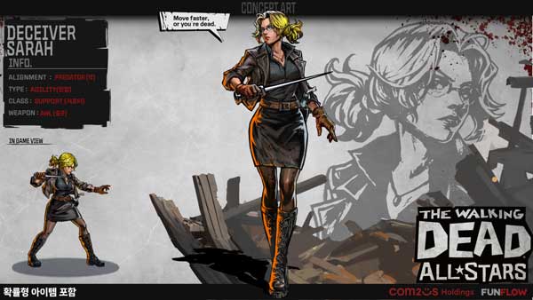 수집형 RPG 워킹데드: 올스타즈는 좀비 신드롬을 일으킨 스카이바운드 엔터테인먼트의 워킹데드 IP를 활용해 포스트 아포칼립스 상황에서의 생존을 주제로 흥미진진한 스토리를 펼쳐가고 있다.