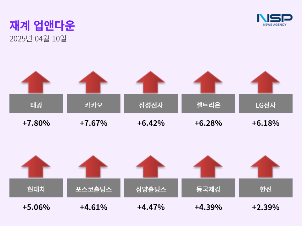(서울=NSP통신) 최아랑 기자 = 10일 코스피(+6.60%)와 코스닥(+5.97%)은 모두 상승했다. 10개의 모든 기업 역시 상승한 가운데 주가에 가장 큰 변동이 있었던 종목은 태광(023160)이다. 태광은 7.80%(1600원) 상승해 2만2100원으로 장을 마무리했다.