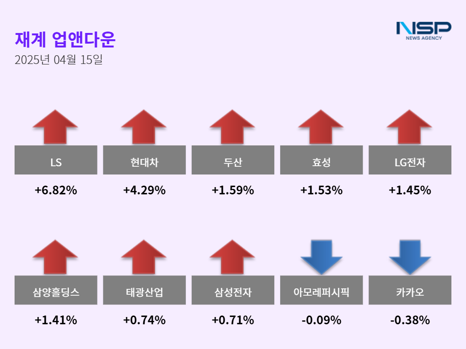 (서울=NSP통신) 최아랑 기자 = 15일 코스피(+0.88%)와 코스닥(+0.41)은 모두 상승했다. 이 가운데 10대 그룹주는 등락이 엇갈렸다. 가장 큰 변동이 있었던 종목은 LS다. LS는 6.82%(8200원) 상승해 12만8500원으로 장을 마쳤다.