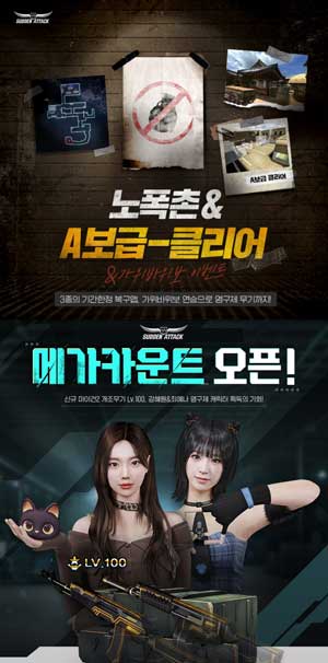 이외 23일까지 신규 개조무기 ‘M2 SG-12(IS) Noble Lv.100 영구제’를 비롯해 특별한 전투 보조 기능이 탑재된 프라임 캐릭터 등 각종 영구제 유니크 아이템을 획득할 수 있는 메가카운트를 선보인다.