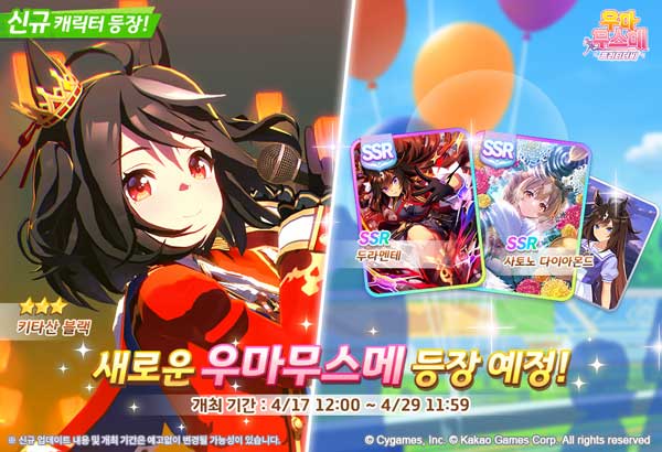 (서울=NSP통신) 이복현 기자 = 카카오게임즈(293490)가 사이게임즈(대표 와타나베 코이치)에서 개발한 인기 게임 우마무스메 프리티 더비에 신규 의상의 키타산 블랙과 스토리 이벤트를 업데이트했다.