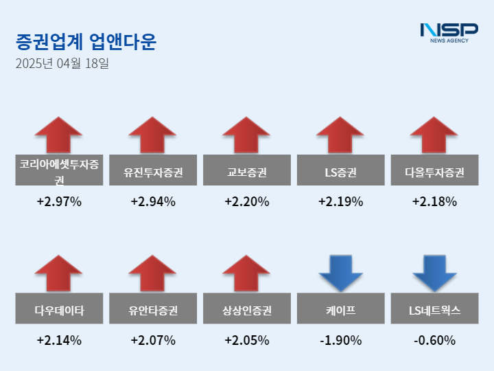 (서울=NSP통신) 설희 기자 = 18일 코스피(+0.53%), 코스닥(+0.85%)은 상승했다. 이 가운데 증권주는 전거래일 대비 0.93%상승했다. 증권주는 38종목 가운데 상승 34개였고 보합 0개, 하락 4개였다.
