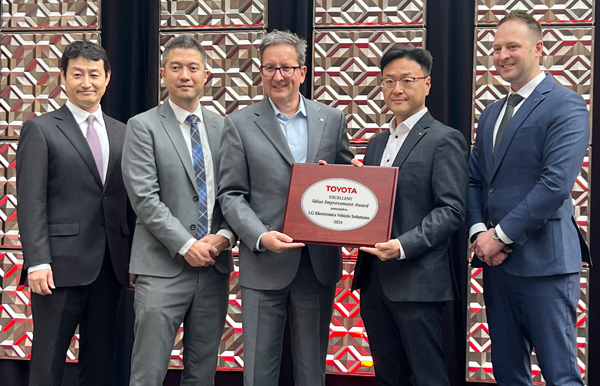 LG전자는 최근 미국 미시간주 디트로이트에서 열린 도요타 북미법인(Toyota Motor North America, TMNA)의 연례 공급사 비즈니스 미팅(Annual Supplier Business Meeting)에서 우수 공급사에게 주어지는 ‘2024 최고가치혁신상(2024 Excellent Value Improvement Award)’을 수상했다.