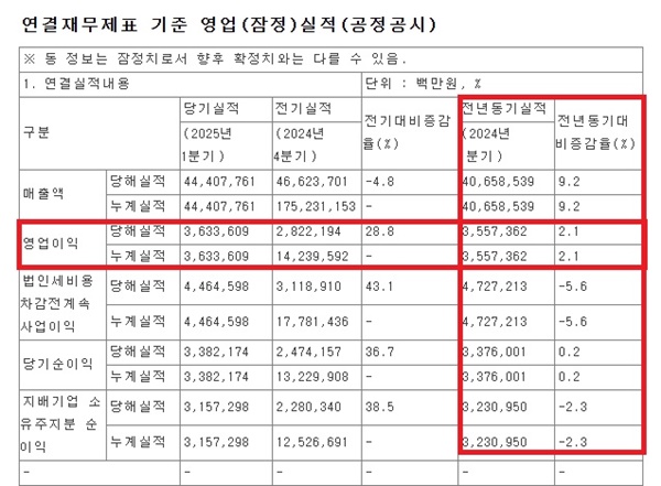 (서울=NSP통신) 강은태 기자 = 현대차(005380)가 24일 경영실적 컨퍼런스콜을 실시하고 발표한 경영실적에 따르면 2025년 1분기 영업이익이 3조 6336억 원을 기록하며 전년 동기 대비 2.1% 증가한 것으로 집계됐다.