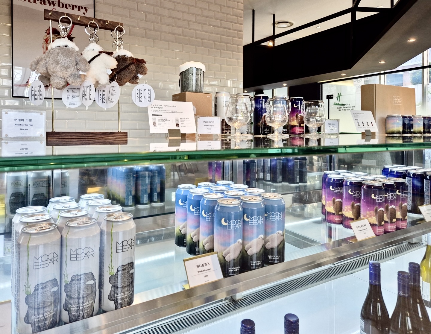 홀리데이 인 인천 송도 1층 라운지에 마련된 문베어존은 문베어의 수제맥주와 굿즈를 한자리에서 경험할 수 있는 브랜드 체험존으로 숍인숍(shop-in-shop) 형태로 마련됐다.