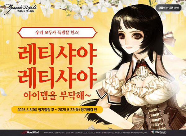 그라나도 에스파다에 따르면 2025년 5월8일 정기점검 후부터 5월22일 정기점검 전까지 레티샤야 레티샤야 아이템을 부탁해 이벤트를 진행한다.