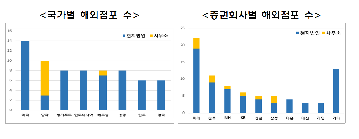NSP통신-국가별 해외점포 수, 증권회사별 해외점포 수 (= 금융감독원)