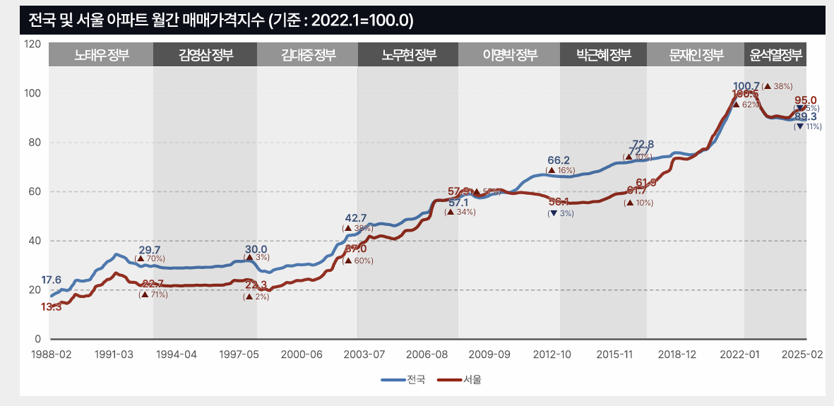 전국 및 서울 아파트 월간 매매가격지수 (그래프 = NH투자증권)