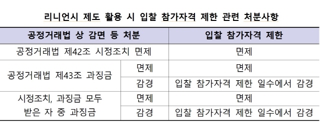구체적으로는 공정거래법에 따라 △시정조치를 면제받은 경우 △과징금을 면제 또는 감경받은 경우 △시정조치 및 과징금 모두 부과된 경우라도 과징금이 면제 또는 감경된 경우 등이 해당된다.