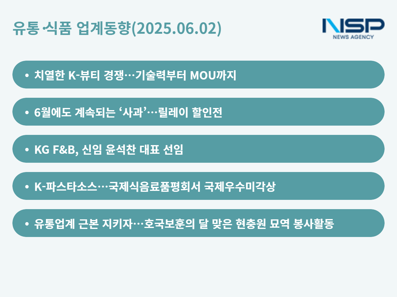 (서울=NSP통신) 옥한빈 기자 = 무더위가 일찍 온 탓인지 뷰티업계까지 경쟁에 불이 붙었다. 지난달 30일 한국콜마는 아시아 주요국 화장품 규제 당국자들이 찾아와 정신없는 시간을 보냈다. 식품의약품안전처가 주최한 ‘2025 원아시아 화장품 규제혁신 포럼’ 행사를 기념해 K-뷰티의 혁신적인 기술력을 체감할 수 있는 가장 대표적인 장소로 한국콜마 종합기술원이 꼽히며 ‘K뷰티 R&D 심장’을 인정받았다. 이에 질세라 W컨셉은 화장품 연구·개발·생산(ODM) 기업 코스맥스와 국내 디자이너 브랜드의 뷰티 사업 확장 지원을 위한 업무협약(MOU)을 체결하며 경쟁력 확보에 나섰다. 한편 백종원의 ‘더본코리아’는 5월에 이어 6월에도 릴레이 할인전을 진행한다. 300억을 풀며 점주들에게 사죄의 제스처를 건내는 모양새다.